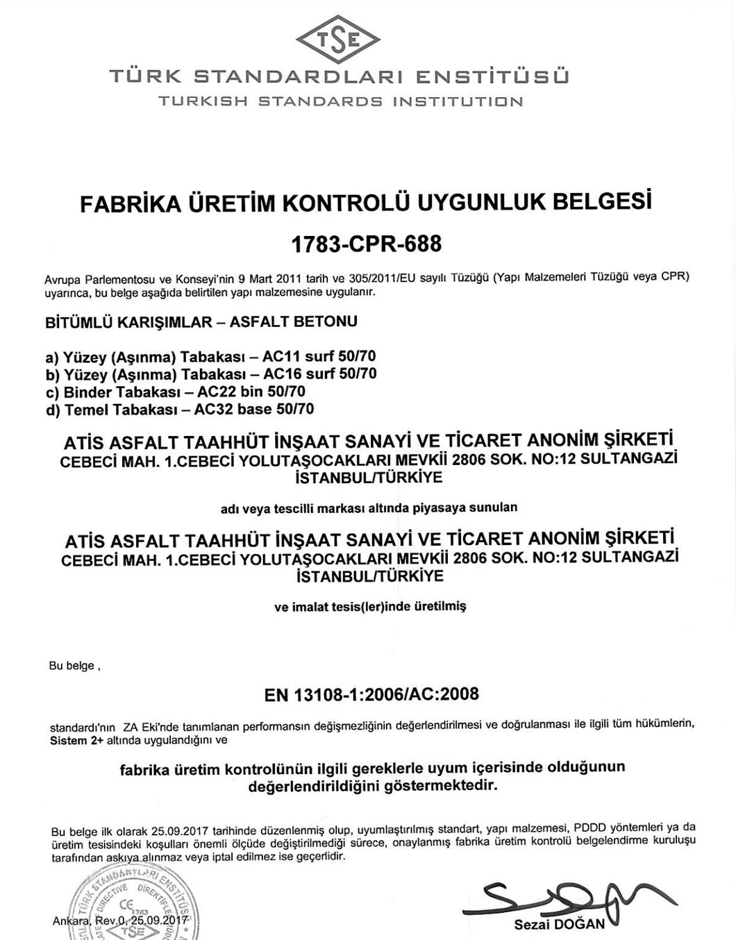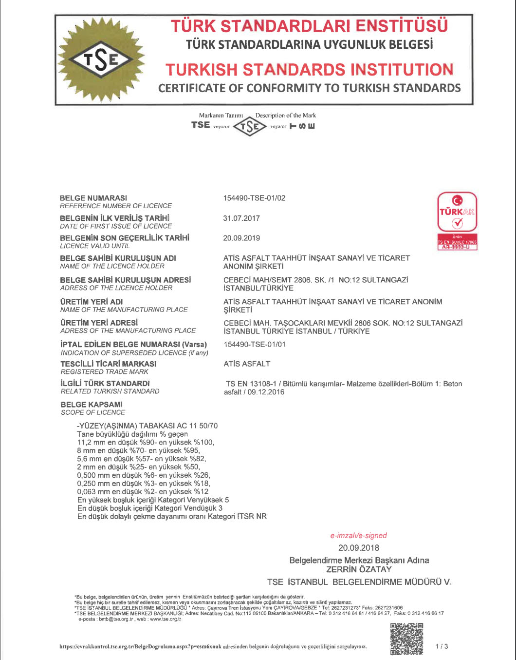 ATİS Asfalt Taahhüt İnşaat Sanayi ve Ticaret A.Ş.’nin mevcut üretim tesisleri aşağıdaki gibidir: